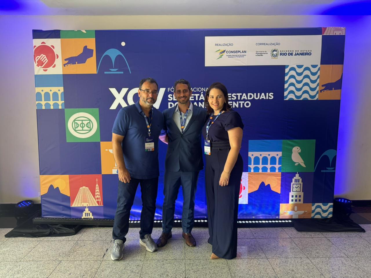 Os gestores sul-mato-grossenses, Thaner Nogueira, secretário-executivo de Gestão Estratégica e Municipalismo, e Katyuscia Campos Fernandes, coordenadora de Planejamento e Estratégia, foram recebidos pelo anfitrião do evento, Rafael Abreu, subsecretário de Planejamento e Orçamento do Rio de Janeiro. Ele conduziu a acolhida das delegações estaduais e destacou a importância da integração federativa para o avanço das agendas de planejamento em nível nacional.